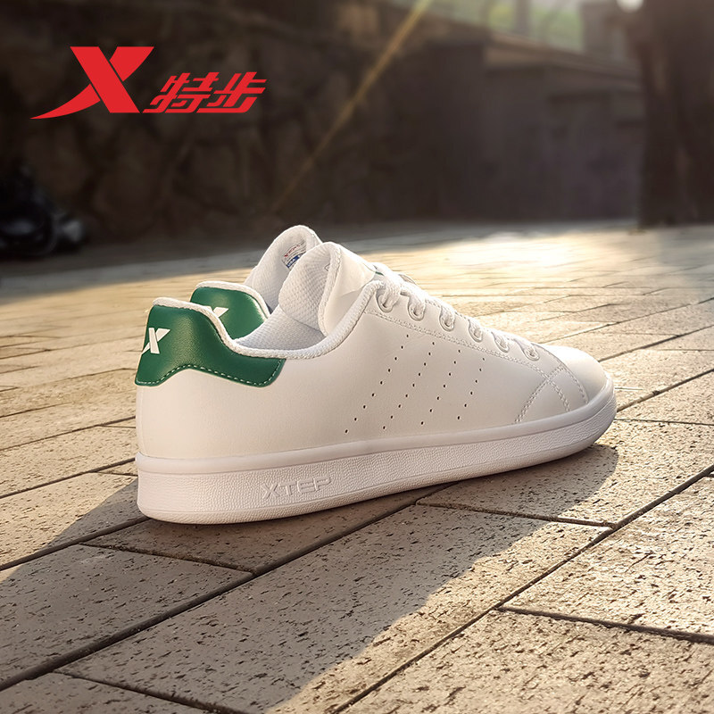 特步男鞋板鞋简约运动休闲鞋春夏季潮流情侣鞋低帮小白鞋防滑耐磨女鞋子官方旗舰网店 白绿-男 429884件已付款抢! -