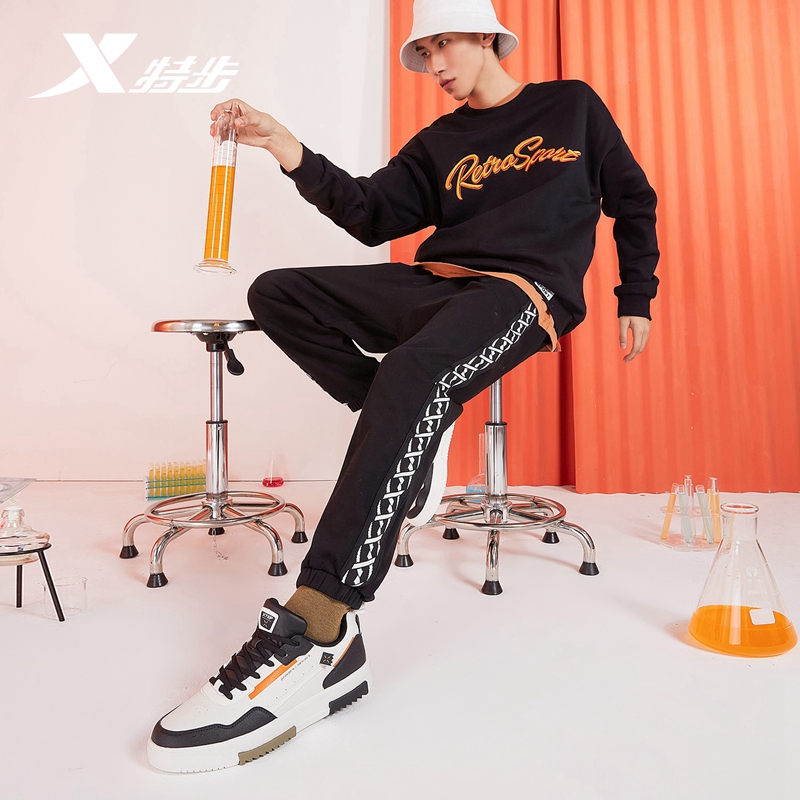 特步男鞋板鞋男运动鞋子男革面拼接潮流时尚滑板运动休闲鞋男丨店长推荐 米黑 428267件已付款抢!