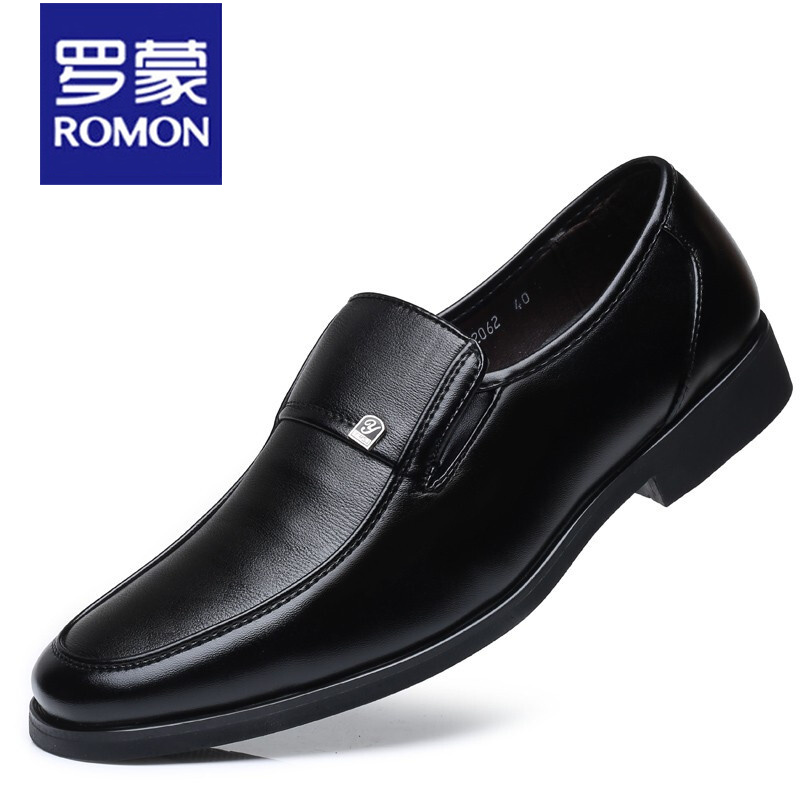 【U】罗蒙(ROMON)2022春夏新款时尚休闲绅士套脚男皮鞋 黑色 403666件已付款抢! -