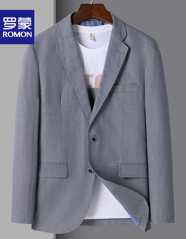 罗蒙西服男新款商务休闲简约西装中青年职业单西外套 A41蓝灰 16584Y(46Y)8389件已付款抢! -