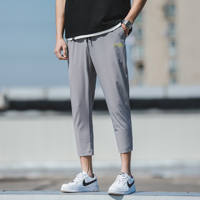 罗蒙(ROMON)冰丝男裤夏季新款大码跑步健身篮球裤店直筒裤针织休闲裤速干长裤 8022灰色 2XL体重125-140斤4014件已付款抢! -