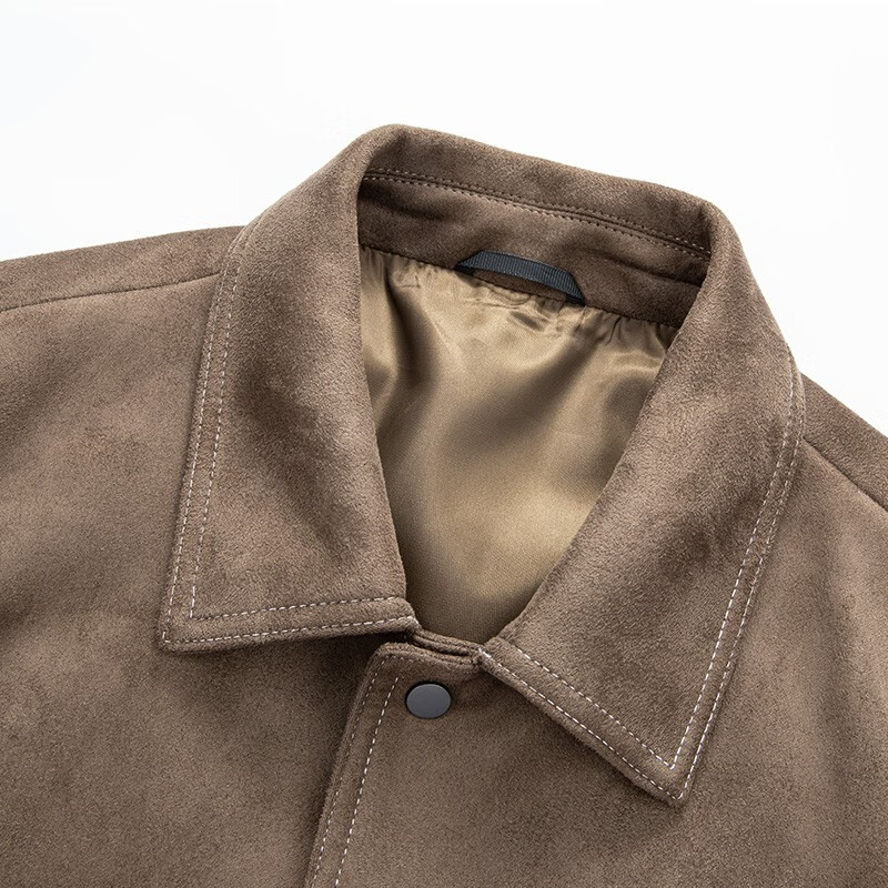 罗蒙麂皮防风翻领夹克男2022年秋季新款中青年纯色百搭外套男 2J196325咖色 1851391件已付款抢! -