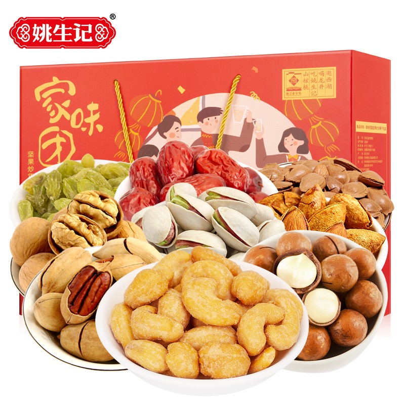 姚生记中秋礼盒 家味团圆高档混合坚果礼盒1.393kg 休闲零食大礼包送礼干果礼盒 每日坚果炒货混合果仁5161件已付款抢! -