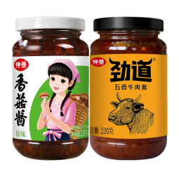 仲景 香菇酱牛肉酱暴下饭菜 招牌拌饭拌面蘑菇酱夹馍菌菇酱料 原味香菇酱1瓶+五香牛肉酱1瓶3062件已付款抢! -