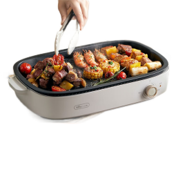 小熊(Bear) 电烧烤炉 家用无烟不粘煎烤一体电烤肉锅 多功能煎烤盘料理锅烧烤炉电烤盘 云灰色DKL-D12Y1
