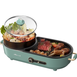 左涮煮右煎烤,双份美味吃喝都尽兴,2.5升涮煮锅,美味充分享。双盘可拆卸无需搬整机,烤盘轻松冲洗不费力。总功率:1600瓦,额定功率:火锅盘900瓦+煎烤盘700瓦。 阅读全文