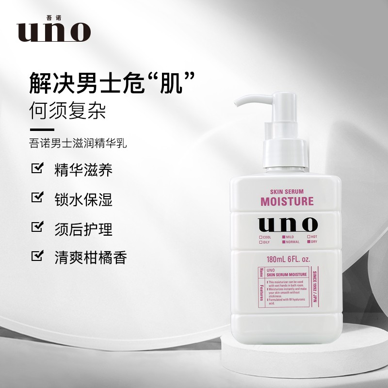 UNO吾诺为资生堂旗下男士护肤品牌,取自意大利语唯一的意思,针对年轻男士,主打无香料、无着色,不粘腻。此款男士滋润精华乳内含天然矿泉水、微细化美容液精华和双重透明质酸,亲肤易吸收,质地清爽不粘腻,柑橘淡香清新怡人,也可用于须后护理。 阅读全文