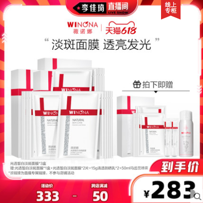 【李佳琦直播间】薇诺娜光透皙白淡斑面膜3盒 改善暗沉 官方正品 满300减50元!