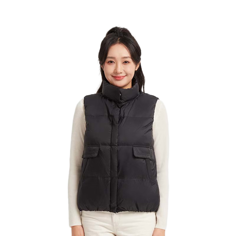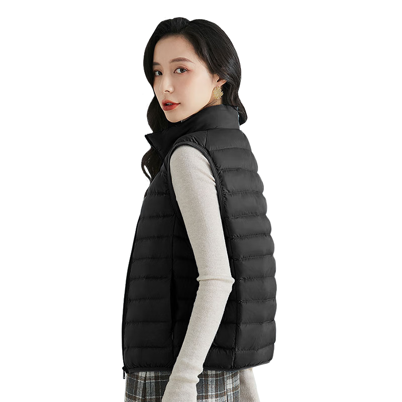 隶玛冬季女羽绒保暖基础简约马甲背心外套 黑色 S体重:40-55kg