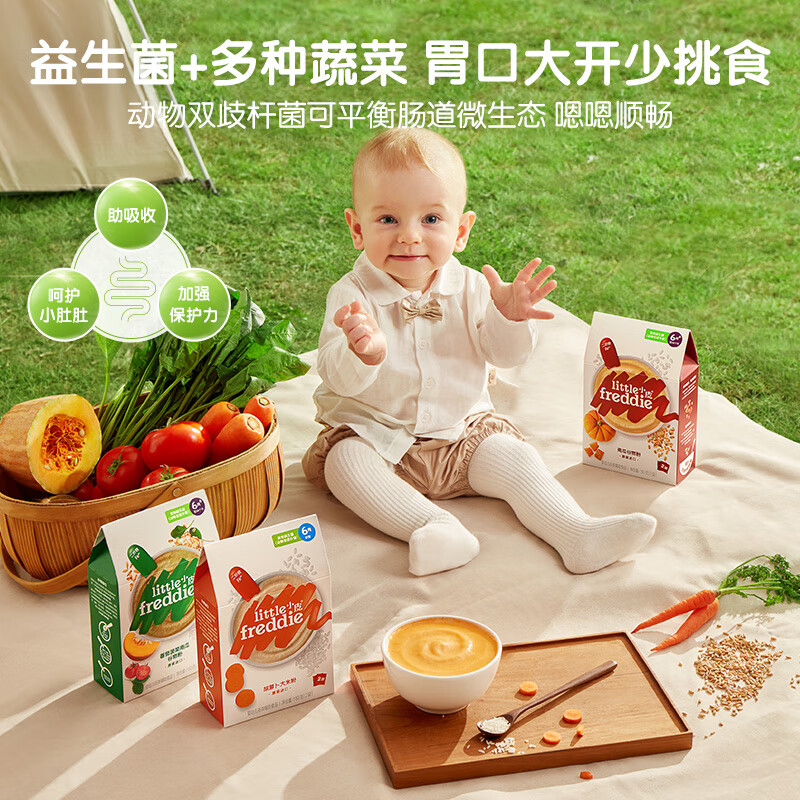 小皮(LittleFreddie)番茄菠菜南瓜谷物粉益生菌高铁米粉欧洲原装进口宝宝辅食婴儿米糊160g*1盒