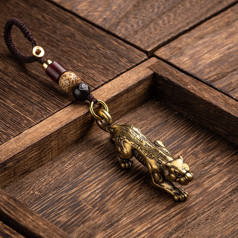 梵下文创纯黄铜汽车钥匙扣小挂件十二生肖虎属相一体虎符复古中国风男女士包包吊坠挂饰品 一体虎符(带挂绳+礼盒装)