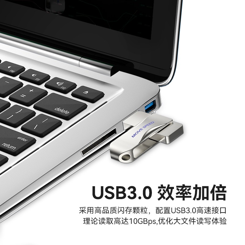 移速(MOVE SPEED)128GB USB3.0 U盘 灵速pro系列 银色 读速150MB/s 360度旋转 金属u盘 车载电脑通用优盘