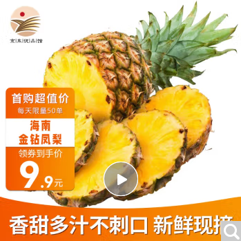 海南金钻凤梨 菠萝 新鲜当季生鲜水果 金钻凤梨 1个 试吃装 (约1.5斤) 秒 杀 价 ¥ 9.80