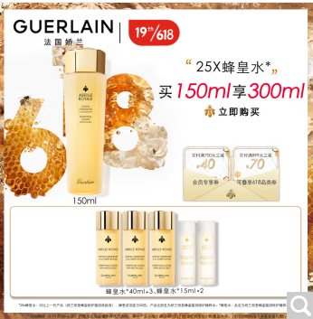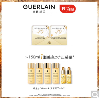 【618年中狂欢】娇兰(Guerlain)帝皇蜂姿蜜润修护精粹水润泽肌肤保湿滋润150ml 细嫩透亮润泽紧致 优 惠 券 满899减70
