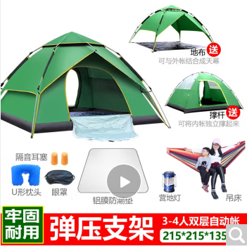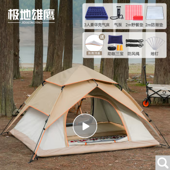 极地雄鹰 JIDIXIONGYIN 帐篷户外帐篷2-4人双层轻奢防雨防晒全自动帐篷免搭建速开露营套装 双层3-4人户外休闲露营套餐-轻奢风 每满299减50 满300享9折