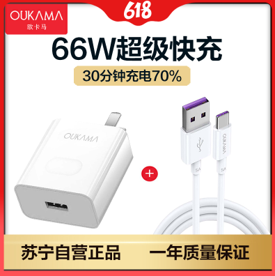 欧卡马66w超级快充头适用华为苹果安卓66W超级快充/闪充充电器+1米TypeC线[套装] 内置电源管理芯片,闪充芯片66W超级快充,低温快充不易烫