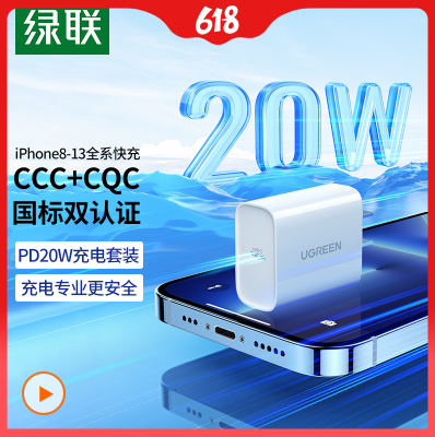 绿联 苹果PD20w快充充电器 适用于iPhone13/12 ProMax8plus/se3小米11手机 兼容PD18W 【支持苹果8-13快充,安全不伤机】快充不伤机 支持苹果8-13快充