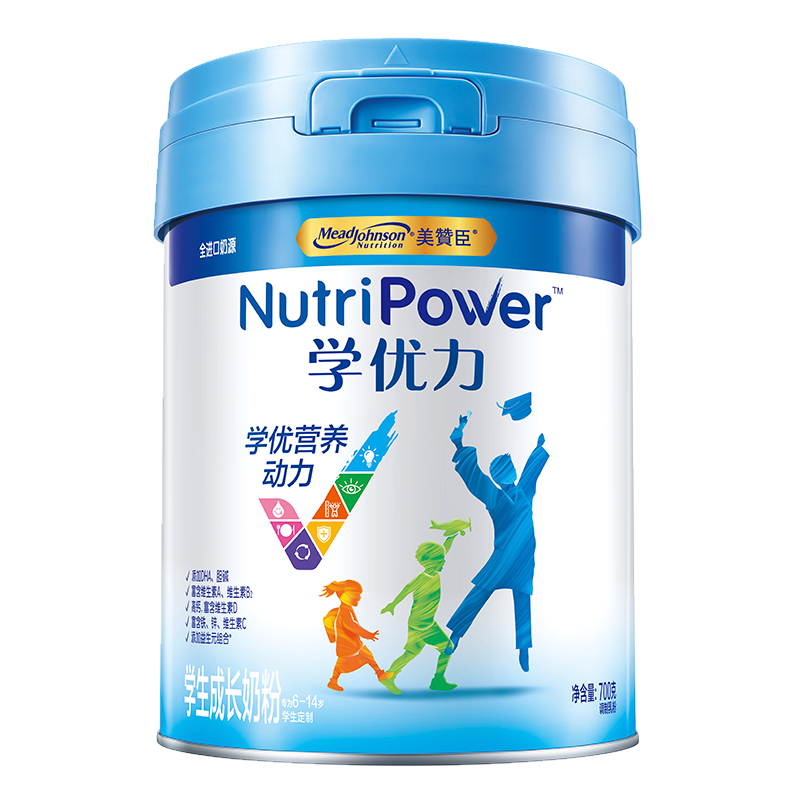 美赞臣(MeadJohnson)学优力儿童学生成长奶粉 青少年足量均衡营养 700克罐装(新旧包装随机发)