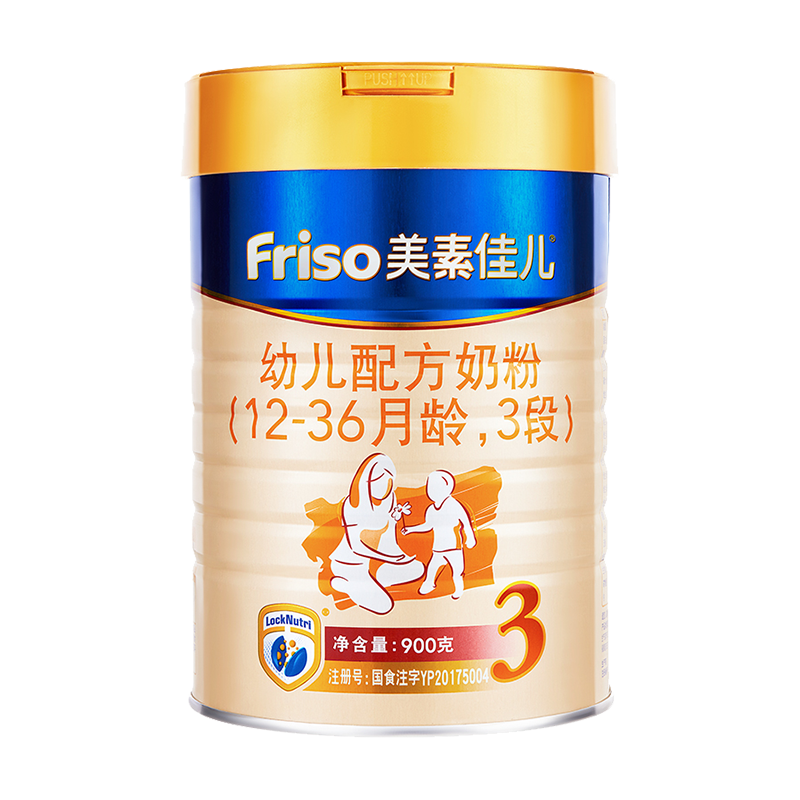 1879年在荷兰创建的Friesland Foods公司如今已是全球四大专业乳制品制造商之一,其出品的Friso 美素佳儿系列更是享誉全球的专业奶粉品牌。这款Friso美素佳儿金装3段幼儿成长配方奶粉,产地荷兰,含5种核苷酸,有助于宝宝的生长发育;DHA、AA及前体物质亚油酸和亚麻酸,有利于宝宝脑部的发育;添加钙、镁及维生素D,利于骨骼发育;添加β-胡萝卜素及维生素C,锌、镁、硒及其他微量元素,帮助宝宝提升抵抗力;蛋白质的特殊处理,并添加低聚糖,有助于宝宝的消化吸收和自然排便。适用年龄:1-3岁婴幼儿,保质期24个月。 阅读全文