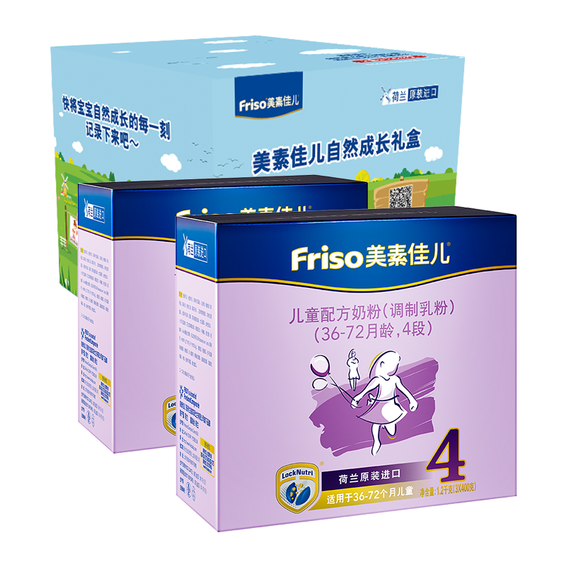 美素佳儿(Friso)儿童配方奶粉 4段(3岁以上至6岁适用)1200克*2自然成长礼盒