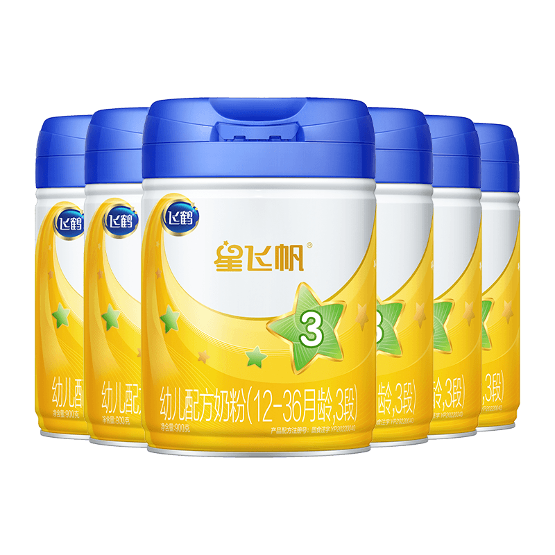 飞鹤星飞帆 幼儿配方奶粉 3段(12-36个月适用) 900克*6罐 专利OPO