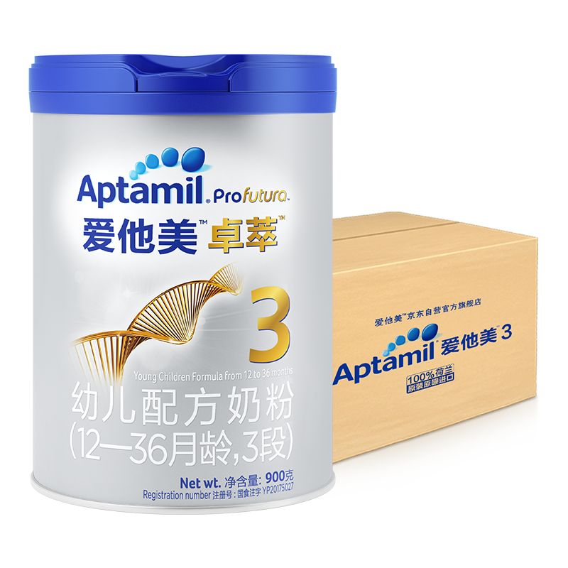 爱他美(Aptamil) 卓萃幼儿配方奶粉(12—36月龄,3段) 900g*6罐 整箱装