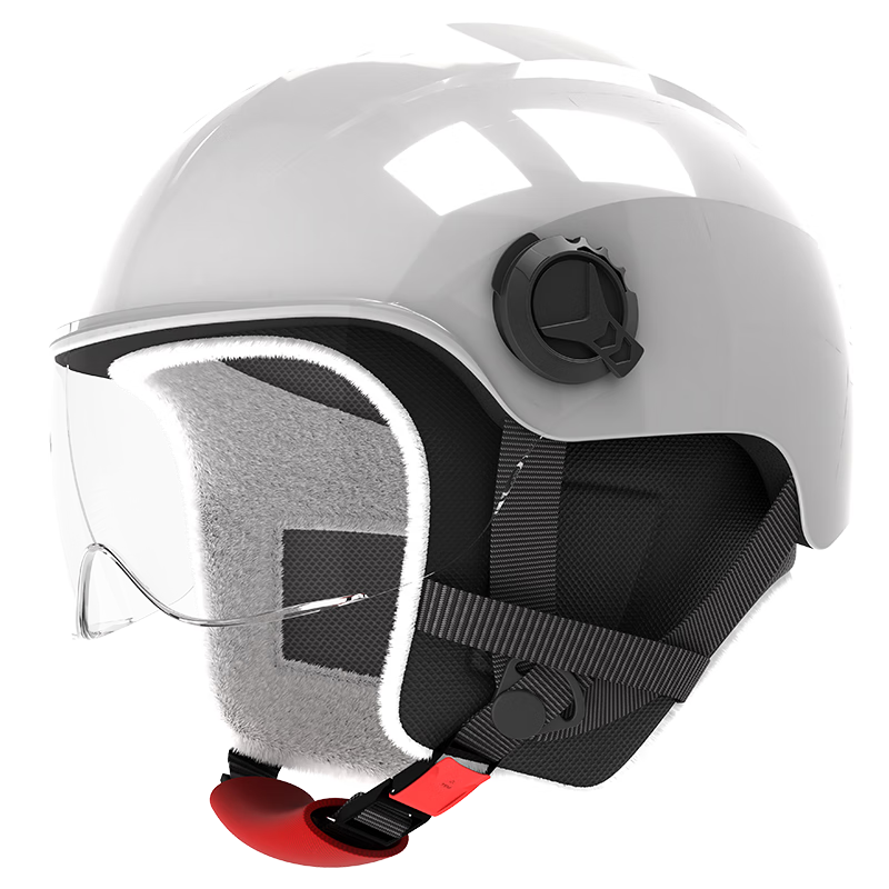 SUNRIMOON 3C认证头盔电动车大号摩托车加大码头盔冬季防冻保暖男女通用 白色均码【冬季保暖款】 黑色长镜
