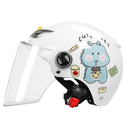 野马(YEMA)儿童头盔电动摩托车卡通3-12男女孩四季通用宝宝夏季电瓶车安全帽 白色小恐龙赠透明镜 均码(3岁-12岁)