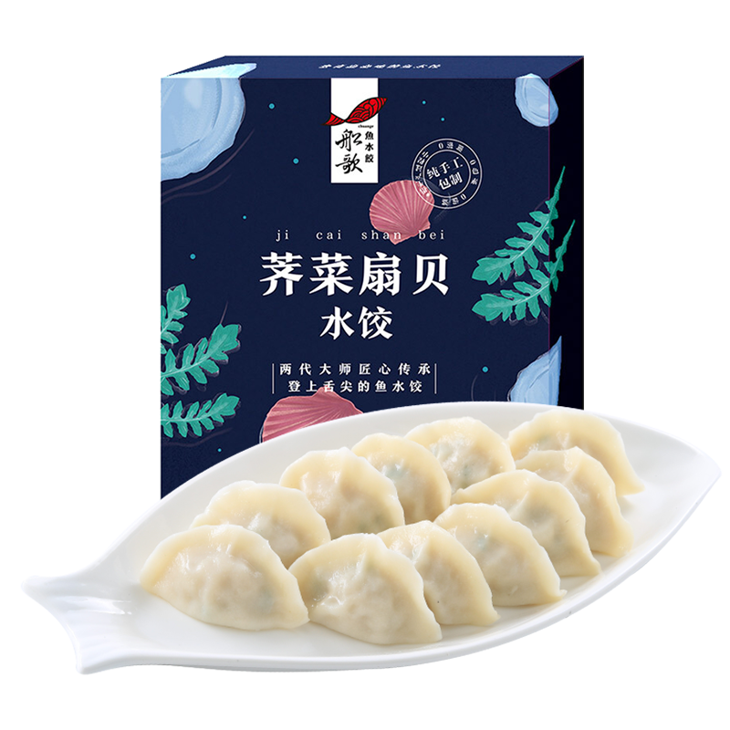 船歌鱼水饺 荠菜扇贝水饺370g(早餐夜宵烧烤 海鲜速冻饺子 火锅食材)