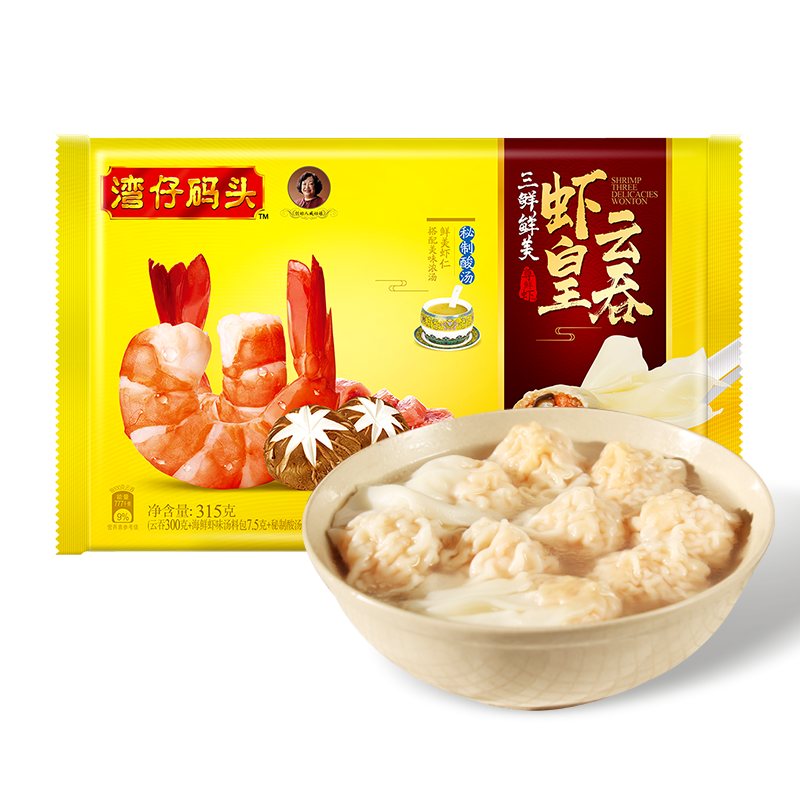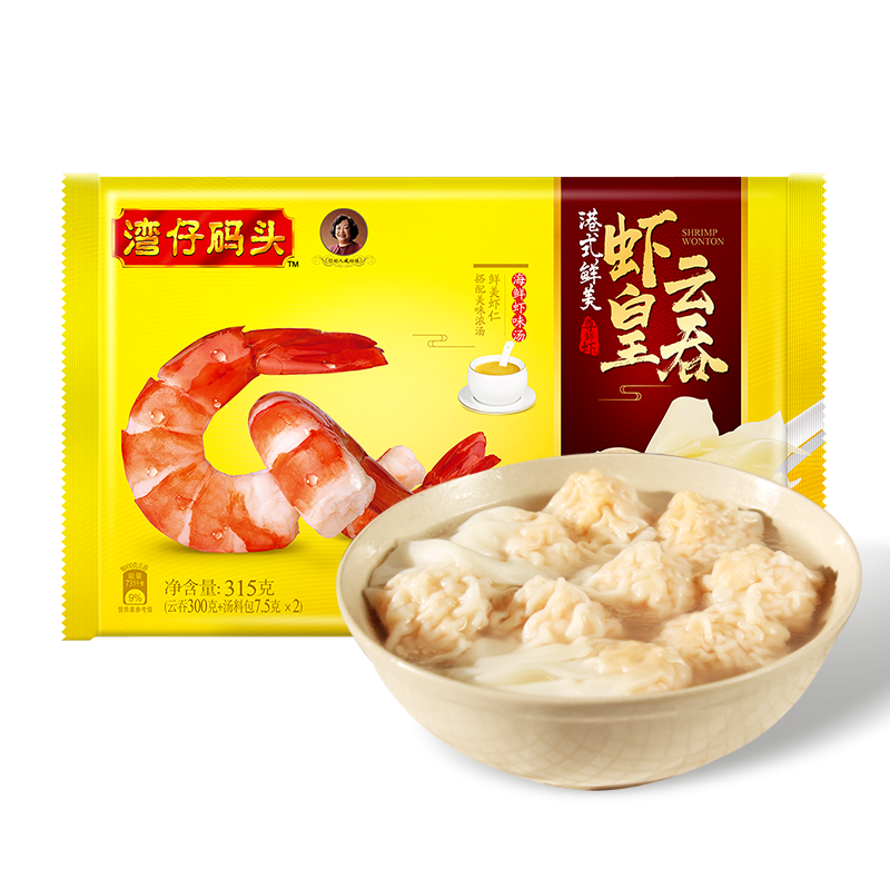 湾仔码头 三鲜鲜美虾皇云吞 315克 20只 儿童早餐 小馄饨 云吞面 火锅食材 方便菜