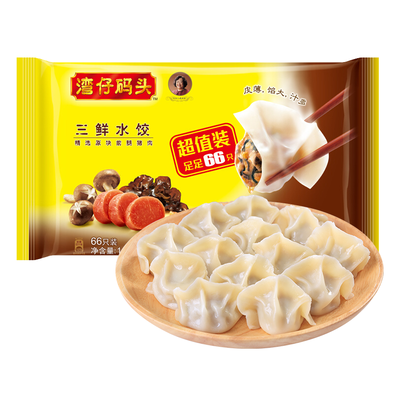 湾仔码头 三鲜水饺 1320g 66只 饺子 早餐夜宵 火锅食材 方便菜 速冻饺子