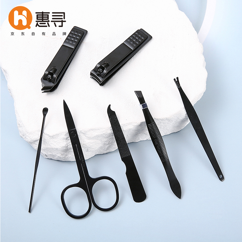 惠寻 京东自有品牌 指甲钳套装7件套 美甲套装工具挖耳勺修鼻毛 皮套颜色随机发