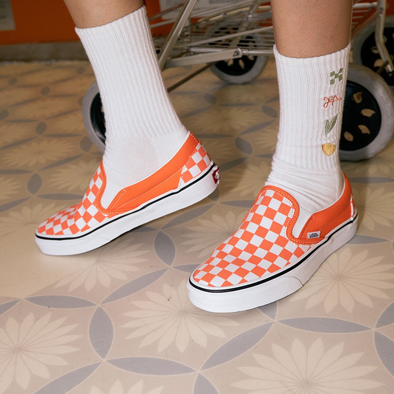 Vans范斯官方 Classic Slip-On小脏橘经典棋盘格男鞋女鞋帆布鞋 橙白棋盘格 42