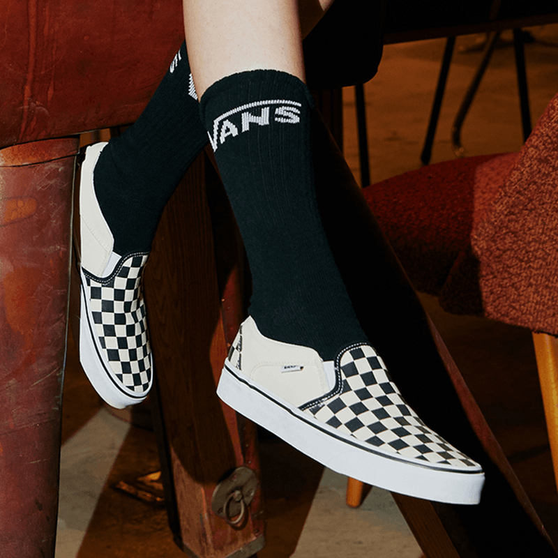 Vans范斯官方 线上专售Asher黑白棋盘格舒适一脚蹬男女鞋帆布鞋 黑色黑白棋盘格(女款) 36