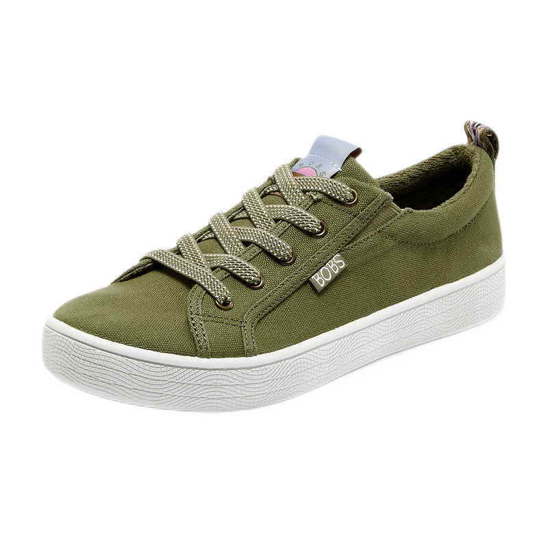 Skechers斯凯奇BOBS系列女士时尚撞色图腾低帮帆布鞋休闲运动鞋113323 OLV橄榄绿 36