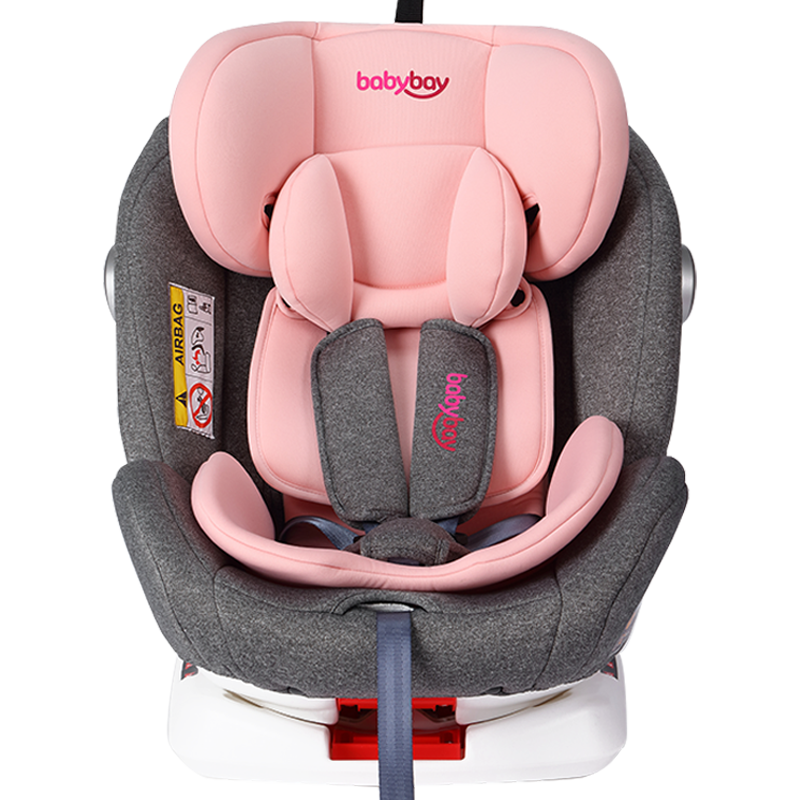 Babybay儿童安全座椅0-4-12岁汽车用婴儿宝宝可坐可躺360度旋转isofix硬接口 可爱粉 360°旋转+isofix硬接口+正反安装