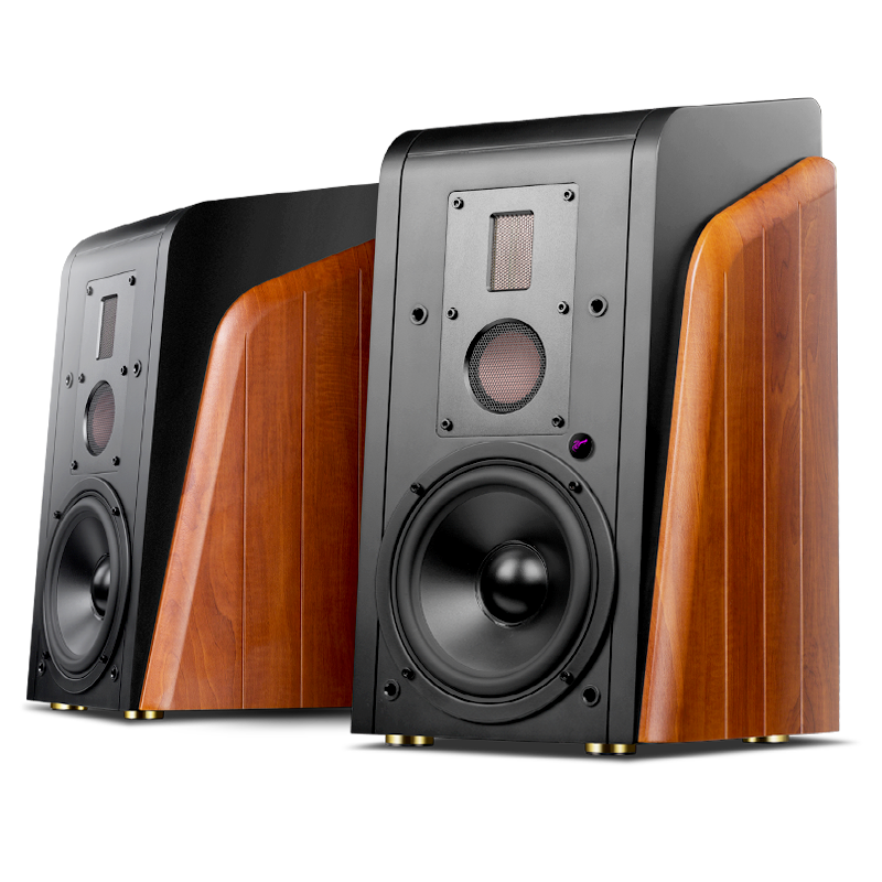 新一代无线蓝牙有源2.1音响系统——M-50WMKIII。 M-50WMKIII的两只卫星音箱分别搭载一只专业3英寸中低音单元和一只19mm金属球顶高音单元,共同构成两路两阶密闭式的卫星音箱。19mm金属硬球顶高音,采用尤为轻薄坚硬的金属合金作为振膜材料,能有效减少在高速运作下产生有损音质的分割振动,使单元始终保持在线性与低失真状态下工作。