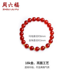 周六福珠宝【情人节礼物】 黄18K金玛瑙手串 鸿运 圆珠18K金手链女款 C1910525 约18cm