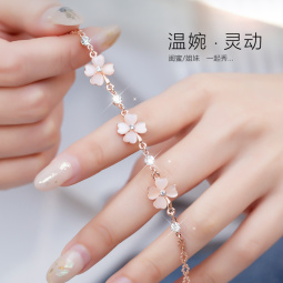 星眸珠宝 四叶草手链女ins风带钻粉色猫眼石小清新链子女学生送闺蜜送女友男送女七夕礼物礼物 浅粉色玫瑰金手链