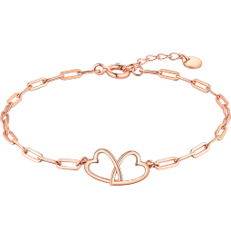 LUKFOOK JEWELLERY 六福珠宝 Silververse系列 女士心心相印银手链 001178BA,925银材质,光洁闪亮,质感清新,再辅以玫瑰金色调镀层,可调节链使其能够贴合您的手围。 阅读全文 -