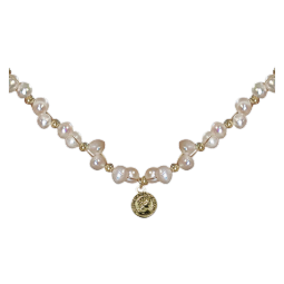 黎戴圆牌吊坠巴洛克淡水珍珠手链小众锁骨链设计复古精致气质轻奢饰品 圆牌巴洛克项链