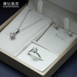 黛钻凰星 经典六爪莫桑钻三件套礼盒(项链+耳钉+戒指),款式简约时尚,适合日常配搭。采用爪镶工艺,圆钉六爪包围一颗莫桑石。莫桑石切工达3EX级别,每个切面皆可折射出绚丽光彩。 阅读全文 -