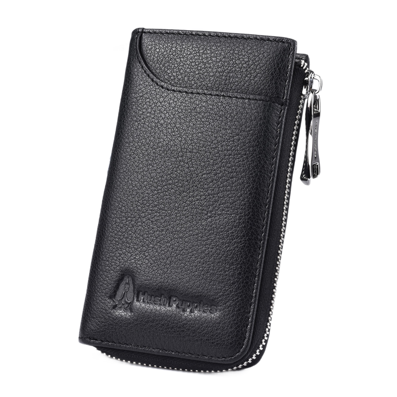 暇步士(Hush Puppies)钥匙包男士外置卡片位设计卡包随身便携钥匙扣多功能收纳包 HC-1811007W-577 黑色 生日礼物送老公送男友