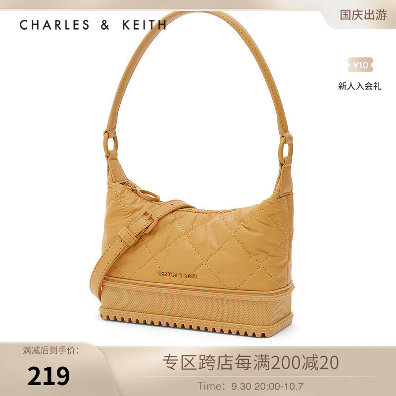 CHARLES&KEITH初秋新品CK2-20781597包包女包甜酷菱格单肩鞋底腋下手提包 Mustard黄褐色 S
