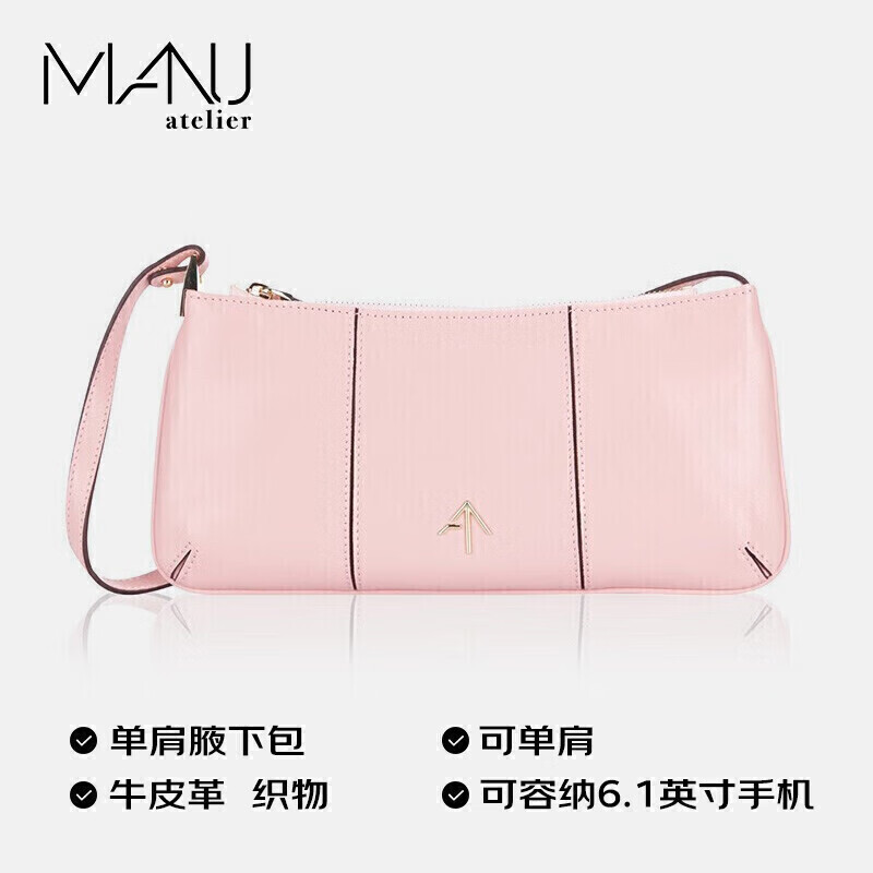 MANUATELIER 马努 奢侈品女包秋冬PITA系列粉色牛皮送女友箭头包腋下包2021524