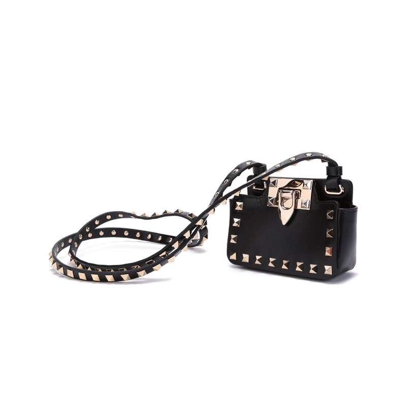华伦天奴 VALENTINO奢侈品女包 女士皮革铆钉装饰单肩斜挎包 WW2P0W41XVJ 0NO 黑色