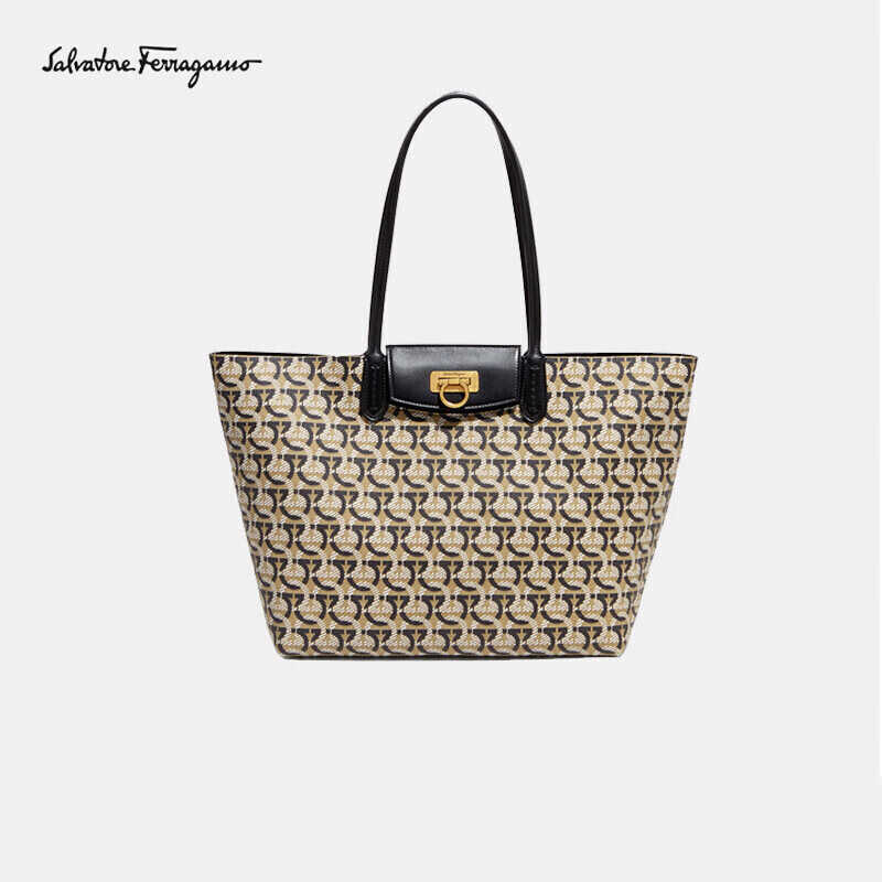 Salvatore Ferragamo 菲拉格慕 女士GANCINI托特购物包 0726588,马蹄扣老花拼接牛皮革材质。尺寸:30*17*27cm。 阅读全文 -