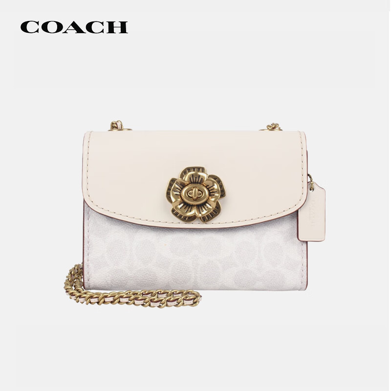 蔻驰COACH【官方直供】奢侈品专柜款女士山茶花白色经典涂层帆布和皮质PARKER18号单肩斜挎包34256B4R7B