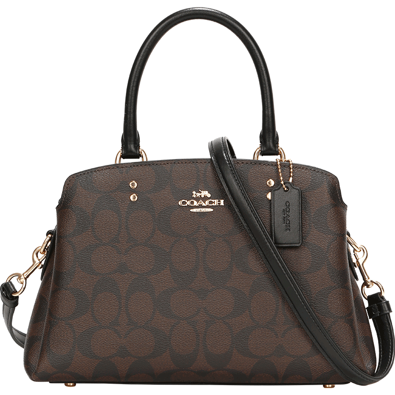 蔻驰COACH奢侈品女士PVC配皮戴妃包单肩手提包 棕黑色 91494 IMAA8【品牌授权 官方直供】