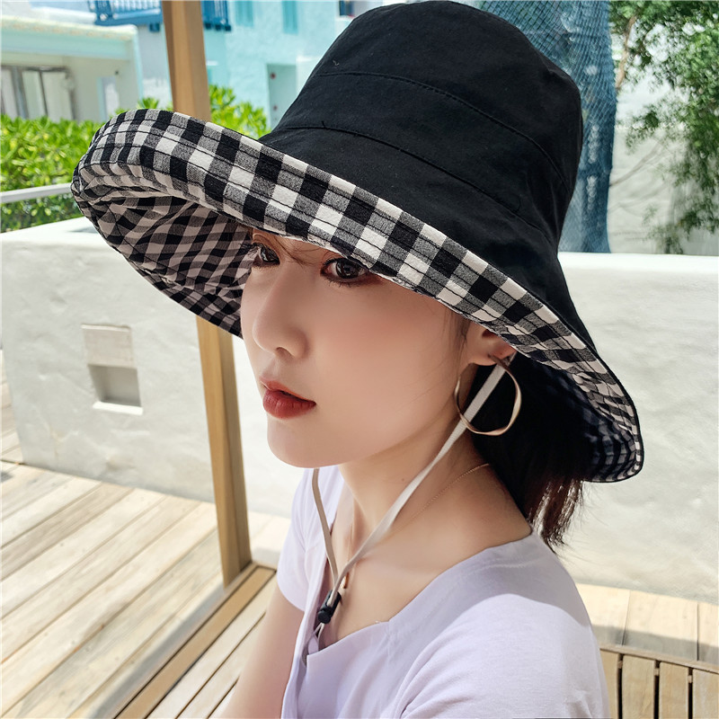 渔夫帽防晒太阳帽女夏天日系双面格子出 券后价:¥22.90元